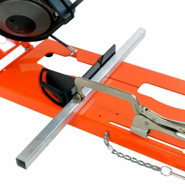 Use this clamp to secure material for cutting in your Milwaukee or Dewalt Portaband Pro. Clamps material up to 4-3/4″ high and slides in the slot on the left side of the jig.